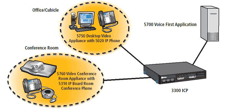 5020 IP Phone, Mitel Networks 5700 Voice First application, and